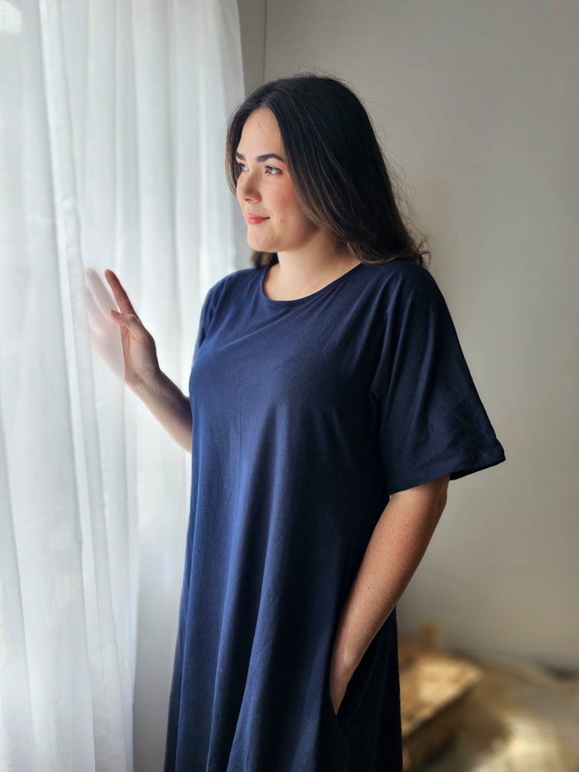 Photographed is a Medium size with pockets in our dark navy 100% pure cotton fabric (please note that this has been preshrunk).