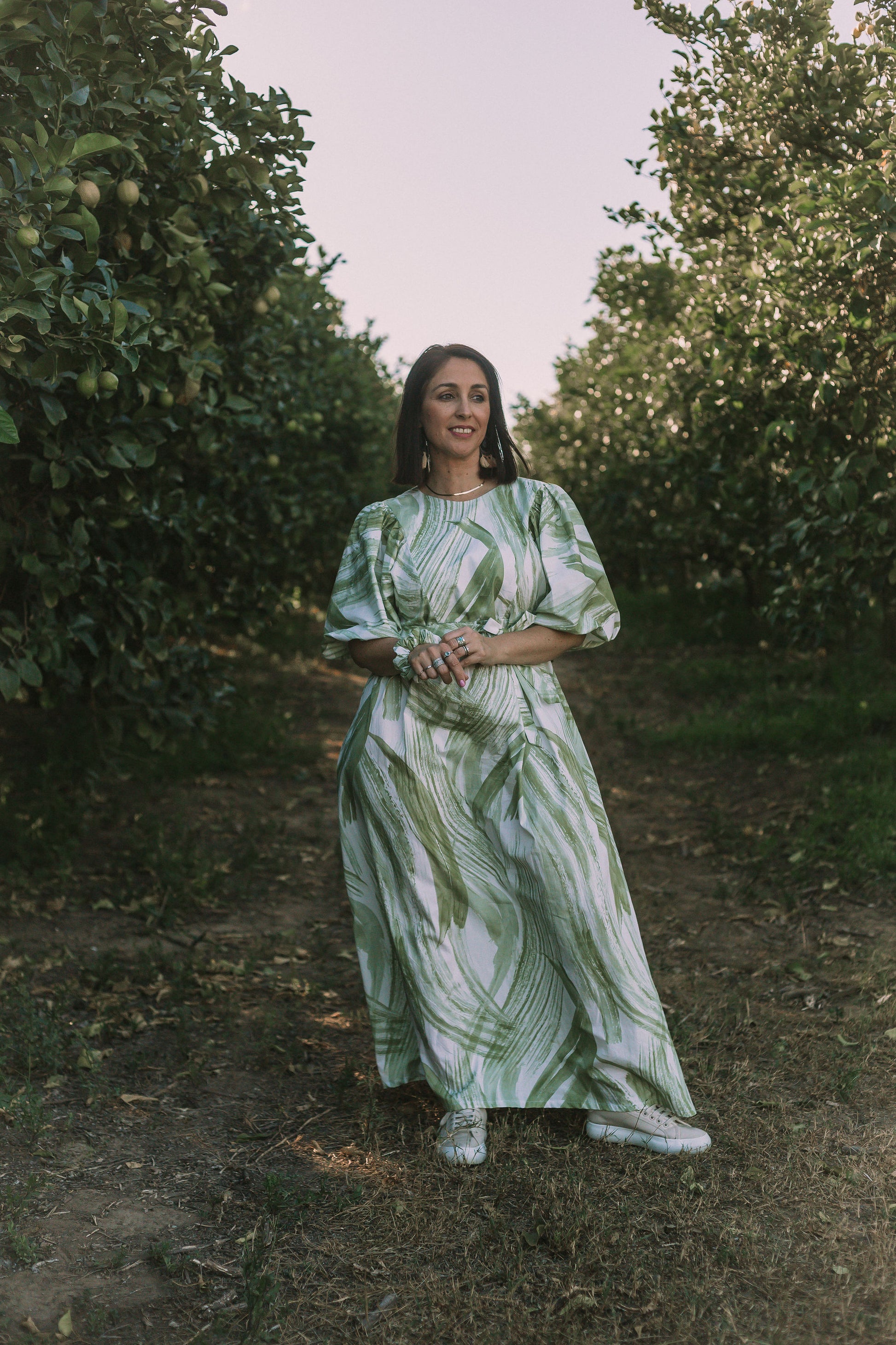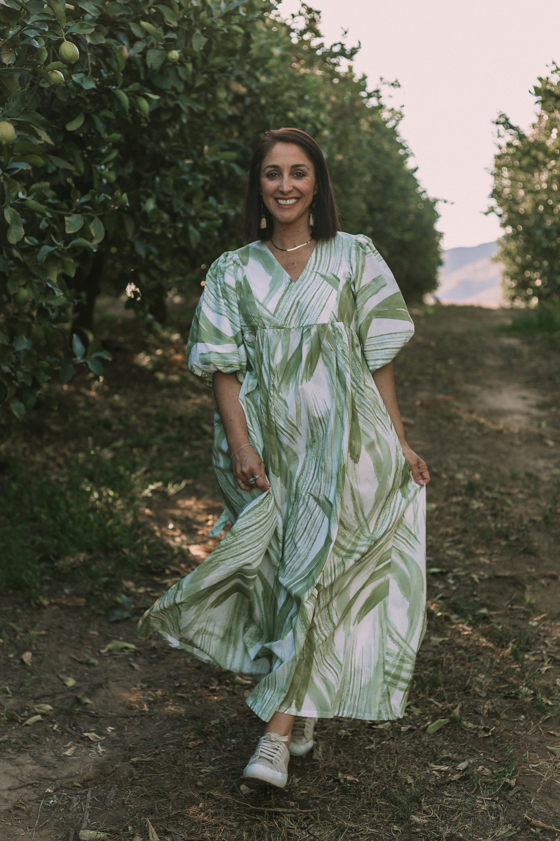 Photographed is a size medium in our Nature's Brush 100% organic cotton poplin print.