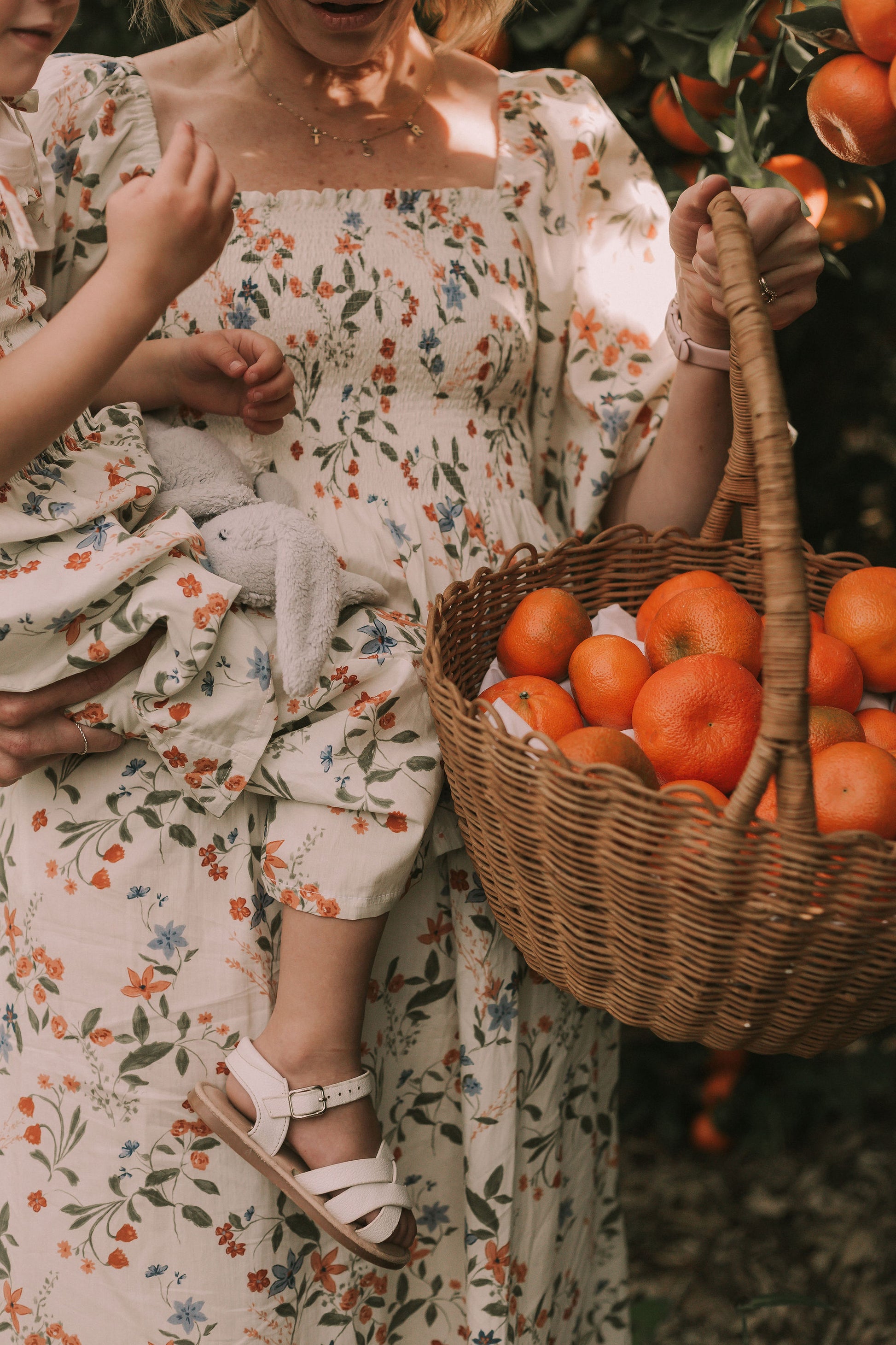 Photographed is a size 3 years in our Orange Blossom print - 100% organic cotton poplin. Please note that the cotton has been preshrunk but there may be slight shrinkage after the first wash.