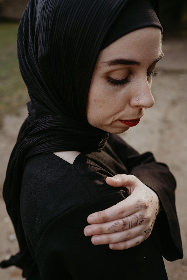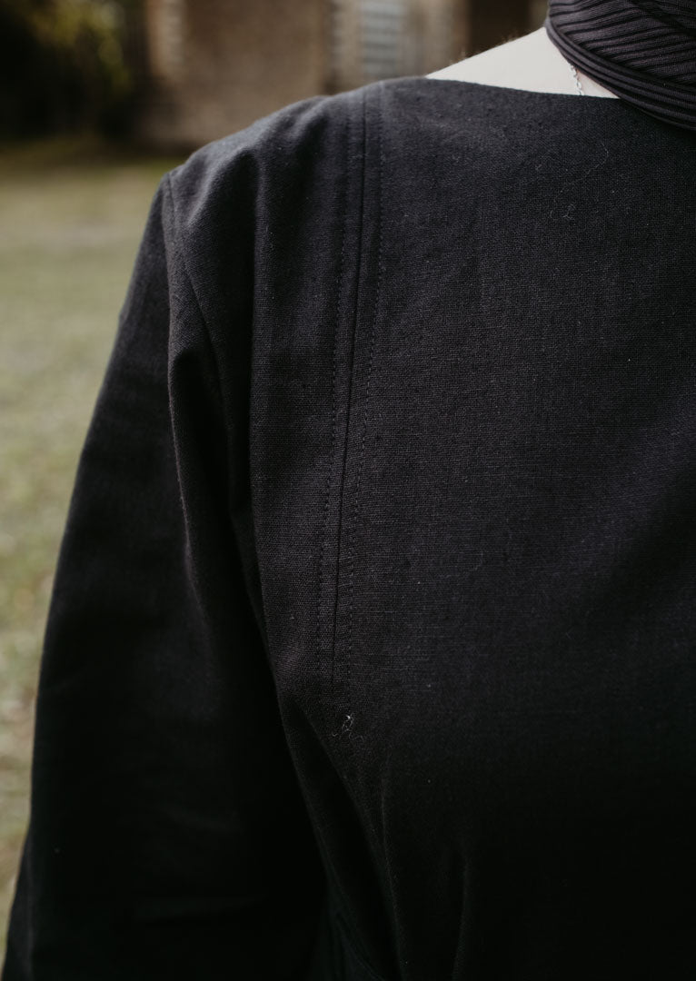 Photographed is a size medium our black Linen Cotton made from 55% pure linen and 45% cotton which creates a sturdy yet soft texture.