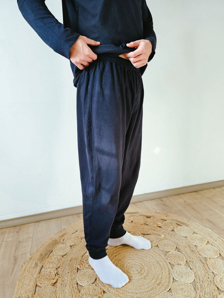 Experience ultimate comfort in our men's winter pajama pants. The long pajama pants are cuffed at the ankle. Contact us for customised pajammer sets.