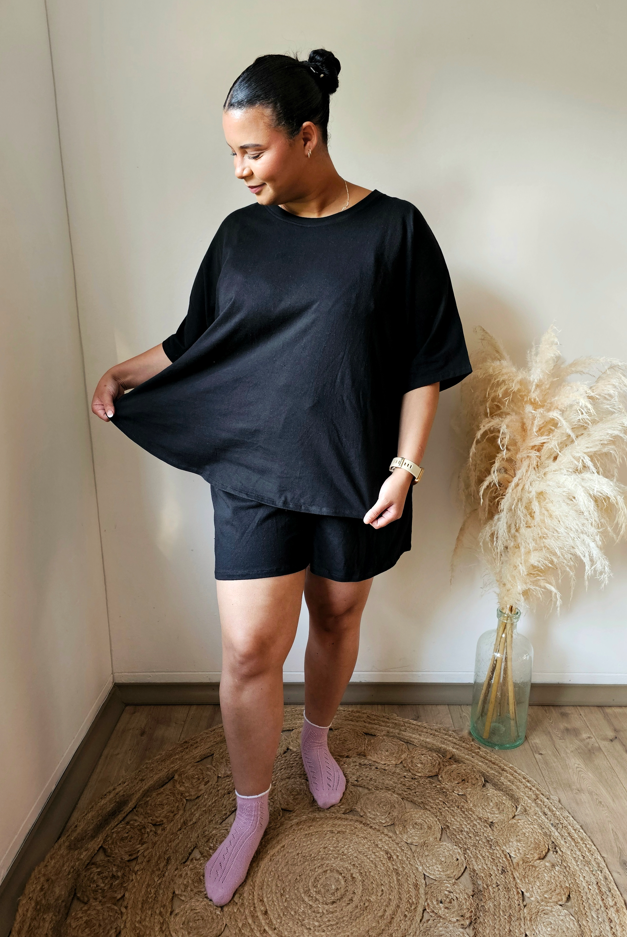 Sleep comfortably in our pajama top designed to easily stretch and remain comfortable during pregnancy. Whether or not pregnant, this pajama top is a must have!