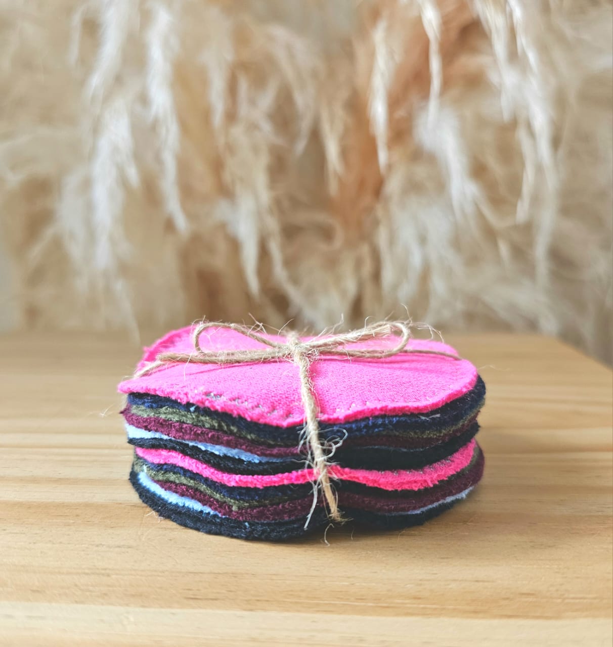 As our way of being a truly conscious brand that uses as much as possible from each piece of fabric, we have taken all the offcuts from our brushed fleece range and crafted reusable cotton rounds.
