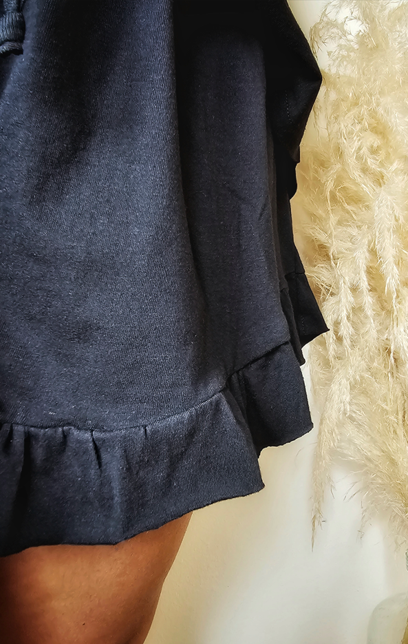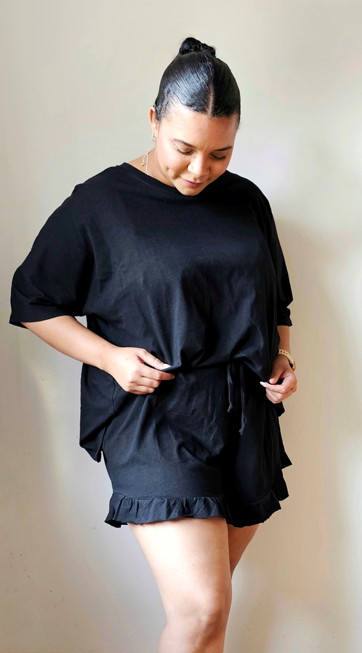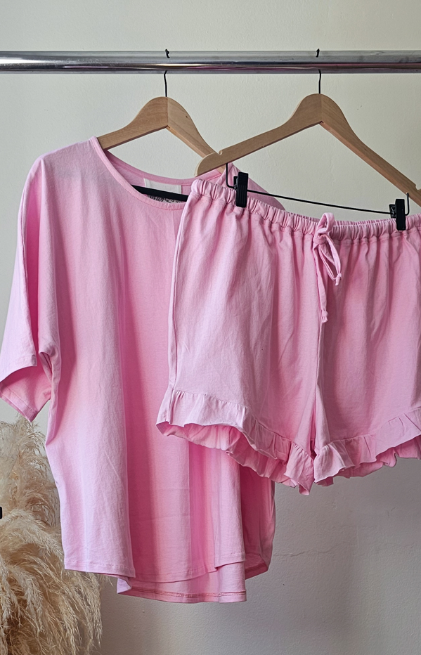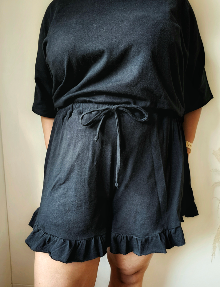 Sleep comfortably in our matching pajammer set designed to easily stretch and remain comfortable during pregnancy. Whether pregnant or not, these pajama shorts are a must have! These shorts are at a comfortable length to step out in public too and have a super cute frilled finish.